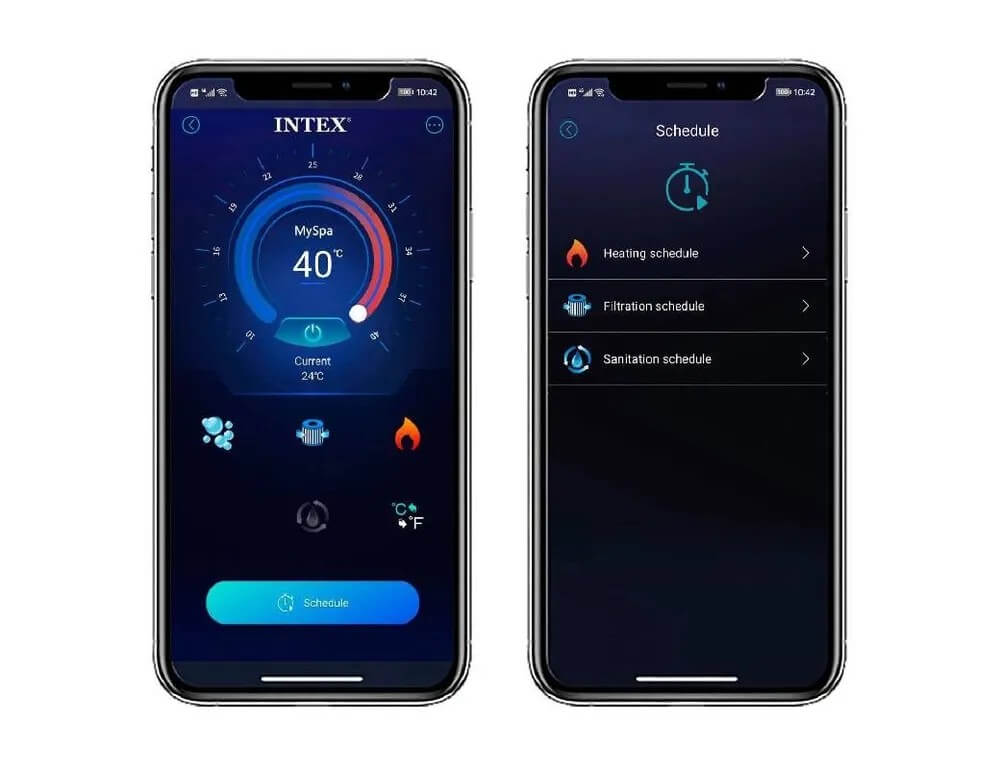 Встроенный нагреватель воды обеспечит комфортную температуру в любую погоду. Температура воды устанавливается от 20 до 40 градусов. Система сама автоматически адаптируется к той температуре, которую вы установили. Скорость нагрева воды при полном заполнении джакузи составляет от 1 до 2 градусов в час.